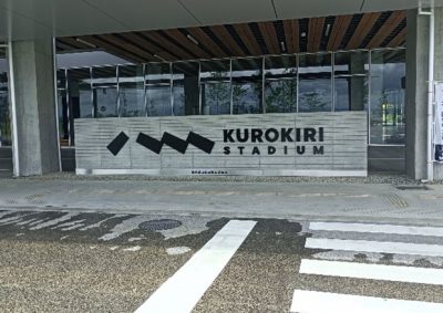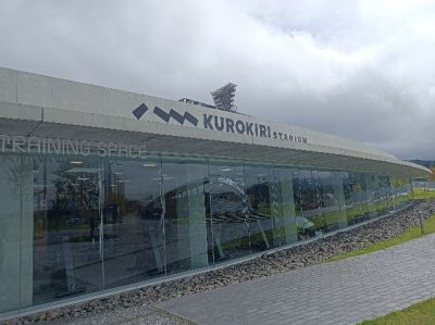 ところで、下の2つの写真にある、クロキリスタジアムと、アカキリフィールドのロゴデザインについている、4つの点は何のデザインか分かりますか?(答えは最後に!)